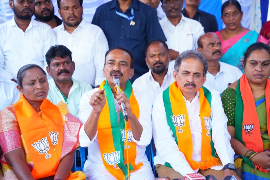 కాంగ్రెస్ ప్రభుత్వాన్ని ప్రజలు ‘థు’ అని అంటున్నారని పేర్కొన్నారు. గతంలో కేసీఆర్ వేధిస్తున్నాడని, చతికిల పడిన పార్టీని గెలిపిస్తే ఇప్పుడు ప్రజలను, ఉద్యోగులను ఇబ్బందులు పెడుతున్నారని విమర్శించారు. రాష్ట్ర ఆర్థిక పరిస్థితి గురించి ప్రభుత్వానికి తెలియదా అని ప్రశ్నిస్తూ, ఆరు గ్యారంటీలు, హామీల గురించి మాట్లాడట్లేదని, గతంలో ఉన్నవే ఇవ్వమని ప్రజలు అడుగుతున్నారని అన్నారు.బీసీలకు బీజేపీ అండగా ఉంటుంది అని ఈటల రాజేందర్ భరోసా ఇచ్చారు. కాంగ్రెస్ ప్రభుత్వ పాలన అబద్ధాల పునాది, గోల్మాల్ అని అభివర్ణించారు. హైదరాబాద్లో పేదల గుడిసెలు కూలకొట్టింది, ప్రజల బతుకులు నాశనం చేసింది కాంగ్రెస్ ప్రభుత్వమేనని ఆరోపించారు. ఎప్పటికైనా ప్రజలకు అండగా, తోడుగా ఉండేది బీజేపీ మాత్రమేనని అన్నారు. పదవులకంటే ప్రజలే ముఖ్యం అని, కేసీఆర్ ప్రభుత్వం ఉన్నప్పుడే ప్రజల కోసం పోరాటం చేశానని గుర్తు చేసుకున్నారు. ‘బీ ఫారంలు నేనే ఇస్తా, ఇక్కడ 25 ఏళ్ల నుంచి నేనే లీడర్ని’ అని ఈటల రాజేందర్ ప్రకటించారు