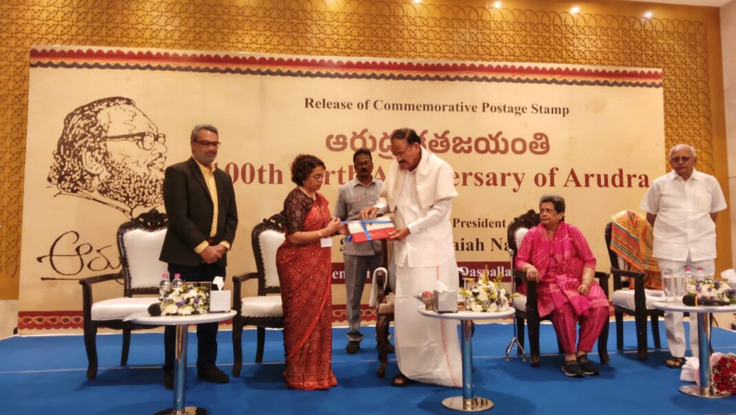 కవి జంటగా ఆరుద్ర, రామలక్ష్మి దంపతులు తెలుగు సాహితీ ప్రపంచంలో చిరస్మరణీయంగా నిలుస్తారని మాజీ ఉపరాష్ట్రపతి ముప్పవరపు వెంకయ్య నాయుడు అన్నారు. ప్రముఖ కవి, సాహితీవేత్త, పరిశోధకుడు ఆరుద్ర శత జయంతి సందర్భంగా హైదరాబాదు హోటల్ దసపల్లాలో మంగళవారం ఆయన స్మారక తపాల బిళ్ళ ఆవిష్కరణ కార్యక్రమంలో ముప్పవరపు వెంకయ్య నాయుడు ముఖ్య అతిథిగా పాల్గొని ప్రసంగించారు. వారసత్వం అంటే ఆస్తులు, పదవులు పంచుకోవడం కాదని, పెద్దలు చూపించిన మార్గాన్ని, వారి ఆలోచనలను భవిష్యత్ తరాలకు మరింత మెరుగైన మార్గంలో అందజేయడమే నిజమైన వారసత్వం అనిపించుకుంటుందని పేర్కొన్నారు. ఈ కార్యక్రమంలో పోస్ట్ మాస్టర్ జనరల్ శ్రీమతి వీణా కుమారి, ఆరుద్ర కుమార్తె శ్రీమతి కవితా చింతామణి, మనవడు గౌతమ్ చింతామణి, సాహితీవేత్త లగడపాటి సంగయ్య సహా పలువురు సాహితీ ప్రముఖులు ఆరుద్ర కుటుంబ సభ్యులు పాల్గొన్నారు.