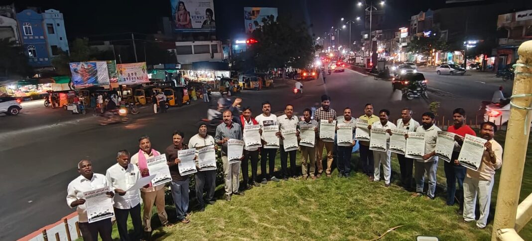 బీసీల రిజర్వేషన్ల కోసం ఈనెల 29న మానవ హక్కుల వేదిక ఆధ్వర్యంలో జమ్మికుంట దినేష్ కన్వీన్షన్ లో నిర్వహించే బీసీ రిజర్వేషన్ల సదస్సుని విజయవంతం చేయాలని పలు సంఘాల నాయకులు కోరారు. దీనికి సంబందించిన మానవ హక్కుల వేదిక, వివిధ రాజకీయ పార్టీలు, దళిత, ప్రజాసంఘాల ఆధ్వర్యంలో హుజురాబాద్ అంబేద్కర్ చౌరస్తాలో సదస్సుకు సంబందించిన వాల్ పోస్టర్, కరపత్రాన్ని ఆవిష్కరించారు. ఈ సందర్భంగా వారు మాట్లాడుతూ తరతరాలుగా విద్యా, గౌరవం, సంపద, అధికారం సమీపాలకు రాకుండా బీసీ కులాలు అణచివేయబడ్డాయని, ఎన్నో ఏళ్లుగా వ్యవస్థీకృత పీడన పర్యవసానాలను అనుభవిస్తున్నాయన్నారు. రాజకీయ రంగం తో పాటు ఏ కీలక రంగంలోనూ బీసీలకు ఉండాల్సినంత వాటా లేదని ఇప్పుడు బీసీలు చైతన్యవంతమై గౌరవప్రదమైన జీవితం, స్థానాలను ఆకాంక్షిస్తున్నారని వారు పేర్కొన్నారు. ఈ నేపథ్యంలో కాంగ్రెస్ పార్టీ బీసీలకు 42% రిజర్వేషన్ కల్పిస్తామని ఇచ్చిన వాగ్దానం ప్రకారం కొంత ప్రయత్నం చేస్తున్నప్పటికీ, మిగతా రాజకీయ పార్టీలు వారి చిత్తశుద్ధి కనపర్చడం లేదని ఈ నేపథ్యంలో అన్ని రాజకీయ పార్టీలో ఉన్న బీసీ నాయకత్వం పార్టీలకతీతంగా చైతన్యవంతమై ఐక్య పోరాటాలకు సిద్ధం కావాలని వారు పిలుపునిచ్చారు. బీసీలకు విద్యా, ఉద్యోగ, ఉపాధి, స్థానిక సంస్థల, చట్టసభల్లో తమ జనాభా దామాషాల్లో రిజర్వేషన్ల కొరకు కోర్టులు అడ్డురాని విధంగా రాజ్యాంగ సమ్మతంగా చట్టం చేయాలని, రాష్ట్రంలోనే కాకుండా, కేంద్ర సంస్థల్లోనూ, ప్రైవేట్ రంగంలో కూడా బీసీ రిజర్వేషన్లు అమలు చేయాలని, అత్యవసరంగా ఎన్నికలు నిర్వహించాల్సి వస్తే ప్రతి రాజకీయ పార్టీ బీసీలకు వారి జనాభా ప్రాతిపదికన సీట్లు కేటాయించాలని నాయకులు డిమాండ్ చేశారు. జమ్మికుంట సదస్సు కు అన్ని రాజకీయ పార్టీల్లో వున్న బీసీ నాయకులు, దళిత, ప్రజా సంఘాల నాయకులు, ఉద్యకారులు, బీసీయేతర ప్రజాతంత్ర మేధావులు, బుద్దిజీవులు హాజరై విజయవంతం చేయాలని వారు పిలుపునిచ్చారు. కార్యక్రమంలో మానవ హక్కుల వేదిక రాష్ట్ర ప్రధాన కార్యదర్శి డాక్టర్ తిరుపతయ్య, తెలంగాణ జన సమితి రాష్ట్ర ప్రధాన కార్యదర్శి ముక్కెర రాజు, నాయకులు గుంటి సామ్రాజ్యం, బండి రమేష్, కొలిపాక సారయ్య, మార్త రవీందర్, పులి జగన్నాథం వేల్పుల ప్రభాకర్, సాదుల వెంకన్న భీమోజు సదన్న, అనిల్ తదితరులు పాల్గొన్నారు.