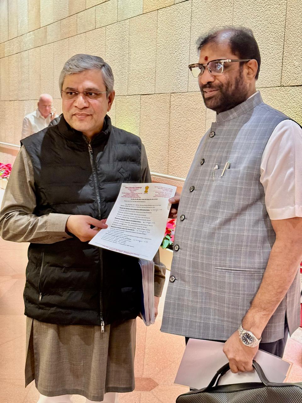 రైల్వే మంత్రి అశ్వనీ వైష్ణవ్ కు ఎంపీ వద్దిరాజు వినతిపత్రం అందజేత