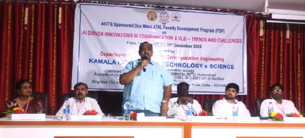 దేశానికి పట్టుకొమ్మలు గ్రామీణ ప్రాంతాలేనని కిట్స్ కళాశాలల కార్యదర్శి, మాజీ ఎమ్మెల్యే ఒడితల సతీష్ కుమార్ అన్నారు. హుజూరాబాద్ మండలం సింగాపూర్ కిట్స్ ఇంజనీరింగ్ కళాశాలలో ఆరు రోజుల అటల్ ఎఫ్డిపి కార్యక్రమ ముగింపు సమావేశానికి ఆయన ముఖ్యఅతిథిగా హాజరయ్యారు. ప్రిన్సిపల్ డాక్టర్ కే.శంకర్ అధ్యక్షతన జరిగిన సమావేశంలో ఆయన మాట్లాడుతూ గ్రామీణ ప్రాంత విద్యార్థులకు సాంకేతిక విద్య అందుబాటులో ఉండాలని, ప్రతి పౌరునికి చదువుకునే అవకాశం కల్పించాలని కిట్స్ కళాశాలను ప్రారంభించామన్నారు. కళాశాలలో ఉన్న వసతులను విద్యార్థులు, అధ్యాపకులు, పరిశోధకులు ఉపయోగించుకొని సామాజిక సమస్యలు పరిష్కరించే పరిశోధనలు చేయాలని సూచించారు. కళాశాల ప్రిన్సిపల్ మాట్లాడుతూ శిక్షణా కార్యక్రమంలో దేశములోని వివిధ ప్రాంతాల నుండి 71 మంది పీజీ విద్యార్థులు, పరిశోధకులు, అధ్యాపకులు హాజరయ్యారన్నారు. ఇంతకుముందు రెండు అటల్ ఎఫ్డిపీలు నిర్వహించామని, కళాశాలలో అన్ని వసతులు ఉన్నాయని, నిష్ణాతులైన అధ్యాపకుల, శాస్త్రవేత్తలచే శిక్షణ ఇప్పించామని వివరించారు. కేంద్ర ప్రభుత్వం వారి సహకారంతో నిర్వహించే అటల్ కార్యాశాలలో ఇంతకుముందు రెండుసార్లు నిర్వహించామని అన్నారు. నిర్వహిస్తున్న అటల్ కార్యశాల మూడవది అని వివరించారు. శిక్షణ సమన్వయకర్త శ్యాంసుందర్ మాట్లాడుతూ ఎలక్ట్రానిక్స్ రంగంలో ఉన్న అధునాతన పరిశోధనలు చర్చించామన్నారు. కార్యక్రమ సహసమన్వయకర్త అధ్యాపకరాలు ఎన్ లలిత వందన సమర్పణ చేశారు. అనంతరం కళాశాల సెక్రెటరీ సతీష్ కుమార్, ప్రిన్సిపాల్ డాక్టర్ కే శంకర్ , విభాగాధిపతి బి. రమేష్, సమన్వయకర్త శ్యాంసుందర్ ను, సహ సమన్వయకర్త లలిత లను జ్ఞాపికలు, శాలువాలతో సత్కరించారు.