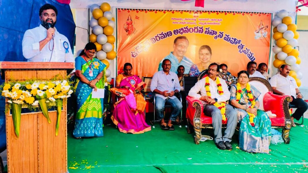 విద్యార్థులకు మార్గదర్శకులు ఉపాధ్యాయులేనని, వారు నేర్పిన పాఠాలే వారి భవితకు బంగారు బాటలవుతాయని పిఆర్టియు హనుమకొండ జిల్లా శాఖ అధ్యక్షుడు మందల తిరుపతిరెడ్డి అన్నారు. నడికూడ మండలం కౌకొండ ఉన్నత పాఠశాలలో పనిచేస్తున్న ఓడపల్లి విజయకుమార్ పదవీ విరమణ సన్మాన కార్యక్రమం బుదవారం జరిగింది. ఈ కార్యక్రమానికి పాఠశాల ప్రధానోపాధ్యాయులు జ్ఞాన ప్రసూనాంబ అధ్యక్షత వహించగా ముఖ్యఅతిథిగా పిఆర్టియు హన్మకొండ జిల్లా శాఖ అధ్యక్షులు మండల తిరుపతిరెడ్డి, ప్రధాన కార్యదర్శి పలిత శ్రీహరిలు హాజరయ్యారు. తిరుపతిరెడ్డి మాట్లాడుతూ పాధ్యాయ వృత్తి పవిత్రమైందని, ప్రతీ విద్యార్థి జీవితంలో ఉపాధ్యాయుల పాత్ర చిరస్మరణీయంగా మిగిలి పోతుందన్నారు. ప్రతీ ప్రభుత్వ ఉద్యోగికి పదవీ విరమణ తప్పదని, ఉద్యోగ ని ర్వహణలో ఆయన చేసిన సేవలు పేరు ప్రఖ్యాతులు తీసుకొస్తాయన్నారు. అన్ని ప్రభుత్వ ఉద్యో గుల కంటే ఉపాధ్యాయ వృత్తి చాలా కష్టతరంతో కూడుకున్నదని, విద్యార్థుల భవిష్యత్ దిశా నిర్దేశం చేయడంలో కీలకంగా ఉంటుందన్నారు. ఈ సందర్భంగా విజయకుమార్ చేసిన సేవలను ఆయన కొ నియాడారు. అనంతరం విజయకుమార్ ని ఘనంగా సన్మానించారు. ఈ కార్యక్రమంలో మండల విద్యాశాఖ అధికారి హన్మంతరావు, నడికూడ మండల శాఖ అధ్యక్షుడు అచ్చ సుదర్శన్, కమలాపూర్ మండల శాఖ అధ్యక్షుడు పటేల్ శ్రీనివాస్ రెడ్డి, మండల శాఖ మహిళా ఉపాధ్యక్షురాలు వింజమూరి మనోరమ తదితరులు పాల్గొన్నారు.