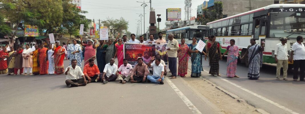 హుజురాబాద్ పట్టణంలోని అంబేద్కర్ చౌరస్తా వద్ద రజక మహిళలతో కలిసి నిరసన.